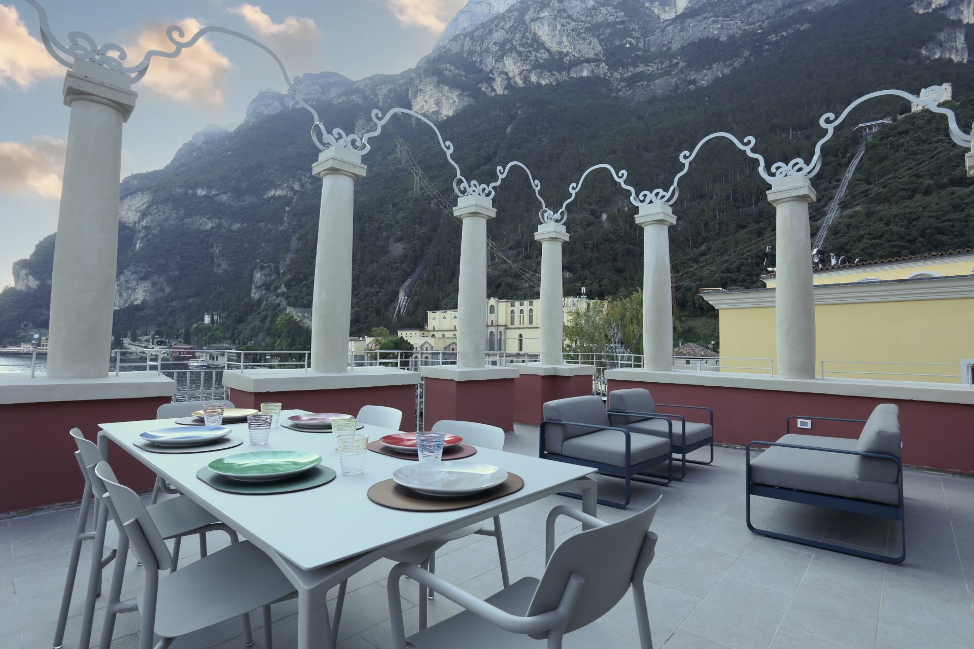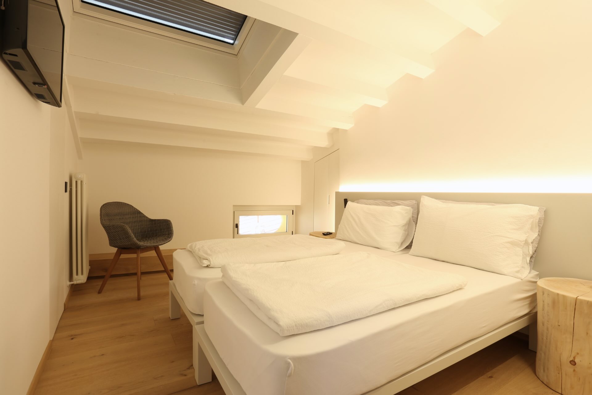 Die SMART-Zimmer sind ideal für zwei Personen und verfügen über ein bequemes 2×2-Bett, in dem Sie nach einem langen Tag im Garda Trentino neue Energie tanken können. Sie sind ruhig und komfortabel und bieten einen Blick auf den hellen Innenhof. Simmons Sommier Black Diamond 2×2 Doppelmatratze (35 cm hoch), Artemide Designer-Lampen, Vitra Sessel, Ganzkörperspiegel, Parkettboden