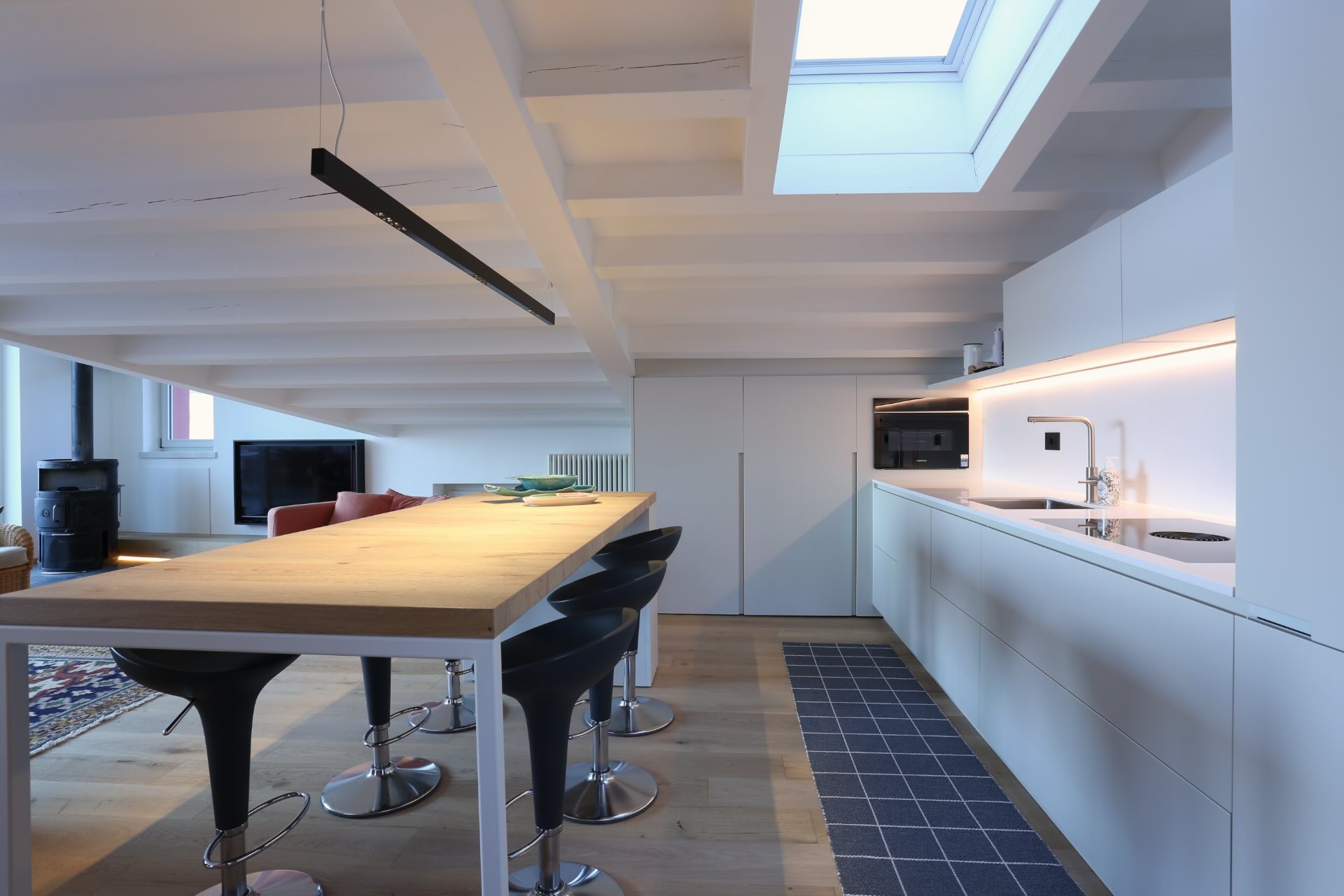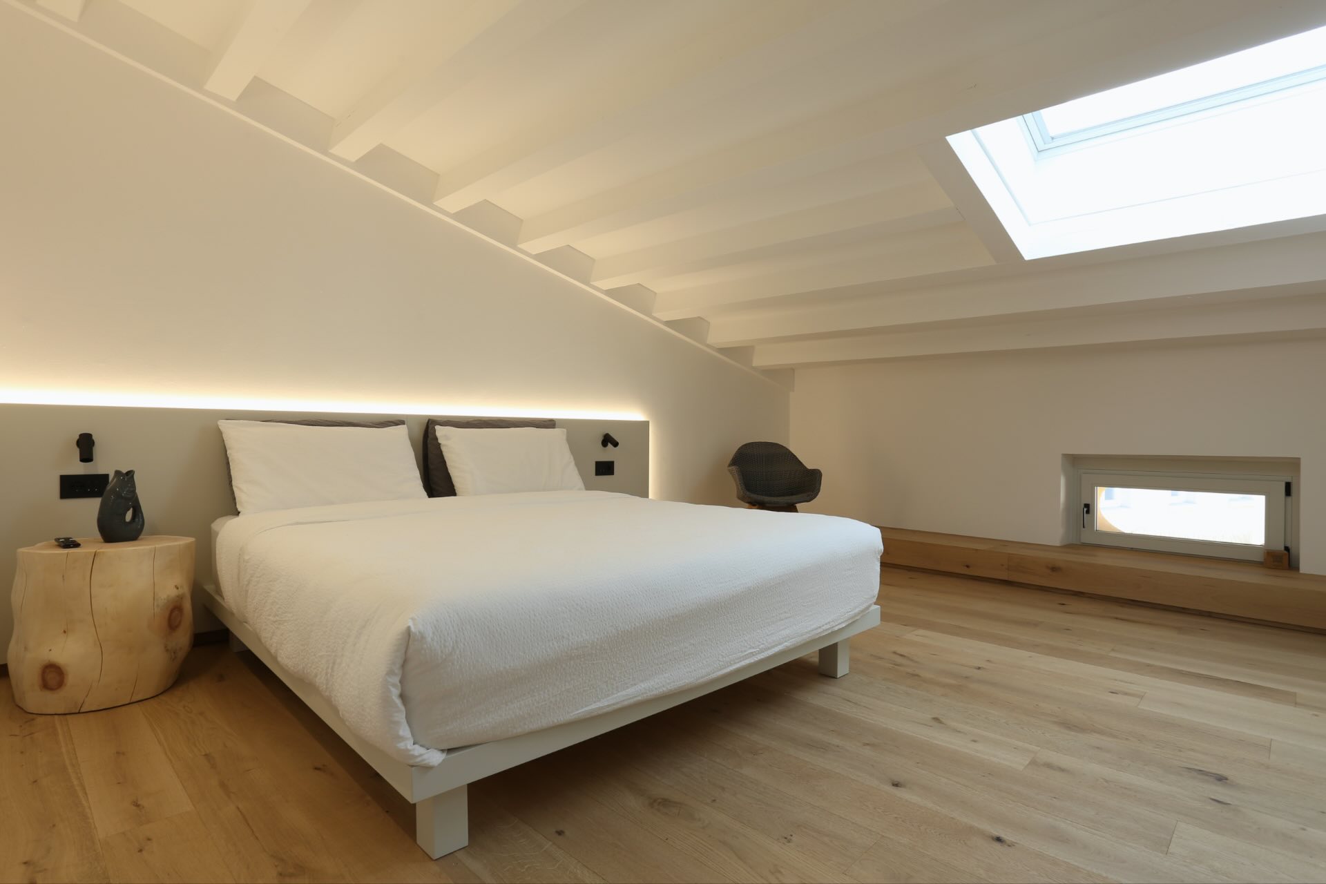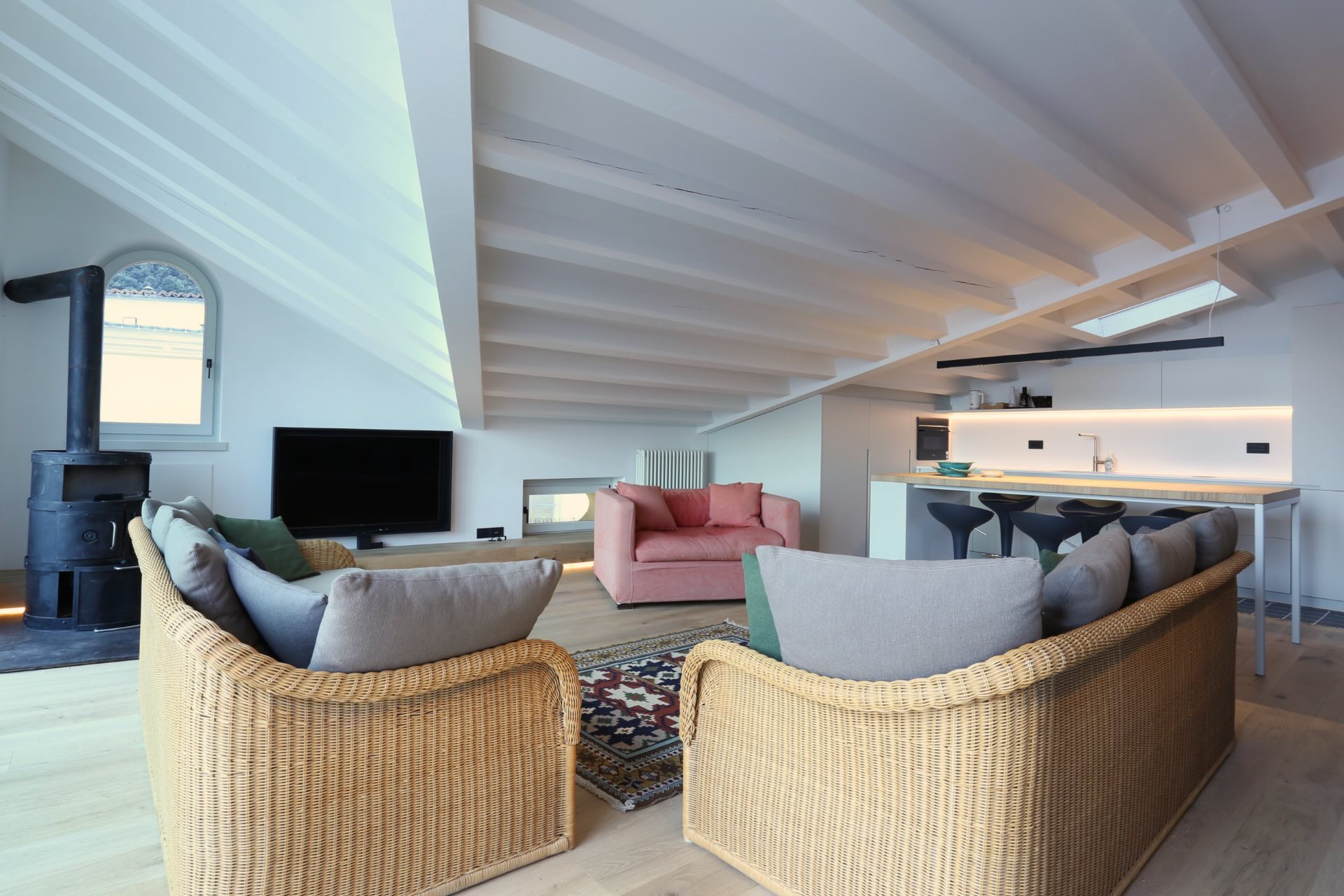 Privat, neu erbaut und unglaublich elegant, befindet sich diese Dachgeschosswohnung im Herzen von Riva del Garda und bietet unverstellte Blicke auf den See. Der Grundriss ist darauf ausgelegt, Komfort und Harmonie mit der Umgebung zu maximieren: Satteldächer verleihen Charakter, zeitgenössische Oberflächen, eine vollständig ausgestattete Küche und ein einladendes Wohnzimmer. Die Lage ist unschlagbar – zentral, nur wenige Schritte von der Uferpromenade entfernt, dabei in einer privaten, unaufdringlichen Umgebung direkt unter dem Turm. Ideal für einen romantischen Kurzurlaub, einen stilvollen Geschäftsaufenthalt oder einfach als exklusiver Zugang zum Charme des Gardasees.